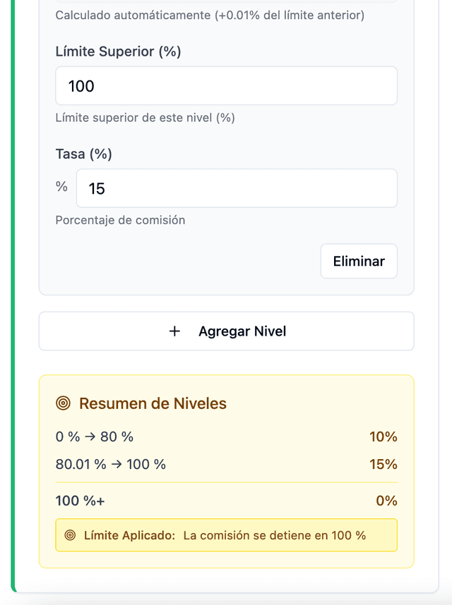 Diseña estructuras de comisiones de forma visual e intuitiva. Configura escalones, topes, bonos y triggers con clicks, no con código ni fórmulas de Excel.