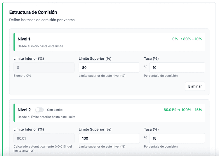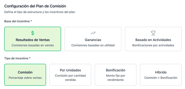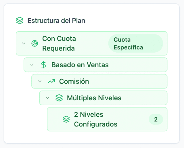Diseña estructuras de comisiones de forma visual e intuitiva. Configura escalones, topes, bonos y triggers con clicks, no con código ni fórmulas de Excel.